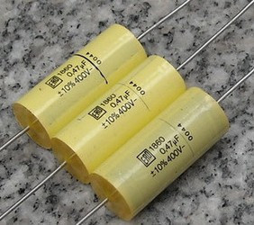 德国品牌的ERO靓声电容,也是很有历史的,ERO电容最常见到的是绿色,也有一些是黄色和蓝色,外观不但组装在电路板上时,煞是好看,声音素质也有不错的表现。其中MKP MKT系列是ERO系列电容中最好的几款之一,声音也具有传统的德国声的理性,但是比WIMA声音要柔和一些,比较中性素质很高,也是发烧友最常用的薄膜电容之一。