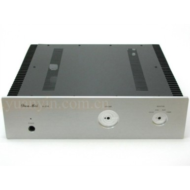 功放机壳 AV238带散热合并式机箱AV238合并式机箱面板颜色:金色/钛银色面板::电源按钮/音量/信号选择 面板为高密度铝合金,开好孔和丝印,发烧级机型,工艺细致。外部尺寸:420×高105×深390mm内部尺寸:358×高102×深380mm散热尺寸:宽190×高100×厚30mm 共4块 配齐:电源开关、旋钮、RCA排座、重量级接线柱、电源插座、保险座等外围配件。