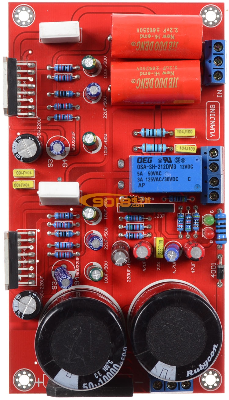 1:本板采用1.6毫米双面板设计,电阻是用金属膜1%误差高精度台湾进口电阻,小电容全部采用日本原装电容,偶合采用高级电容,滤波采用Rubycon 1万微法电容。